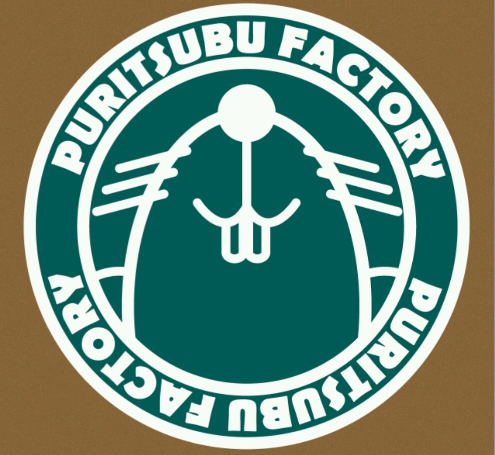 「ぷりつぶ工房」のオレンジ色ののぼりを机の上に立てております。